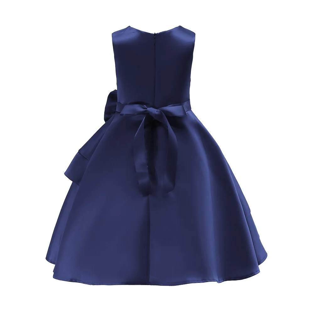 Elegant Girl Dresses Sleeveless Big Bow Decor Satin Gown For Performance Ball Wedding Bridesmaid Communion Pageant Girl clothes