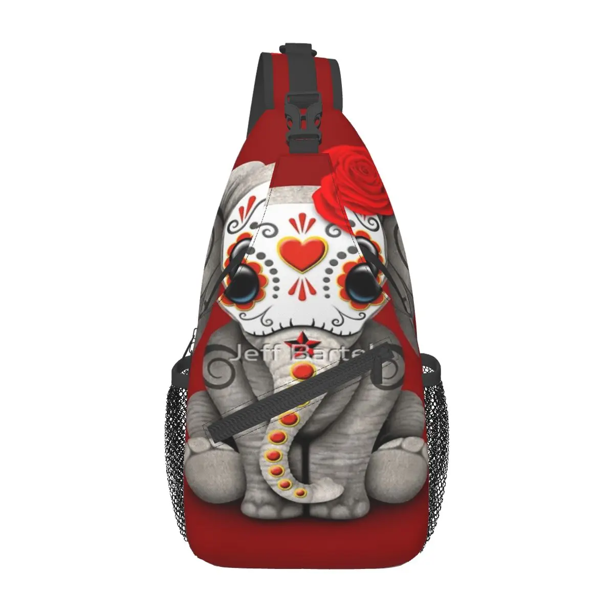 Нагрудная сумка Red Day Of The Dead Sugar Skull Baby Elephant, праздничная Вместительная дорожная нагрудная сумка через плечо, настраиваемая