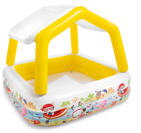 Детский бассейн "Sun Shade Pool" Intex 57470 - замечательный выбор для Ваших детей. Эта модель крайне популярна в нашем магазине. Особенностью ее является отстегивающаяся крыша. Толщина материала 0,25 мм. Имеется сливной клапан.
