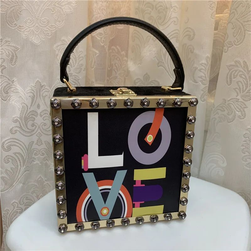 Luxury rivet diamond ladies handbag shoulder strap bag party bag fashion retro box bag wallet