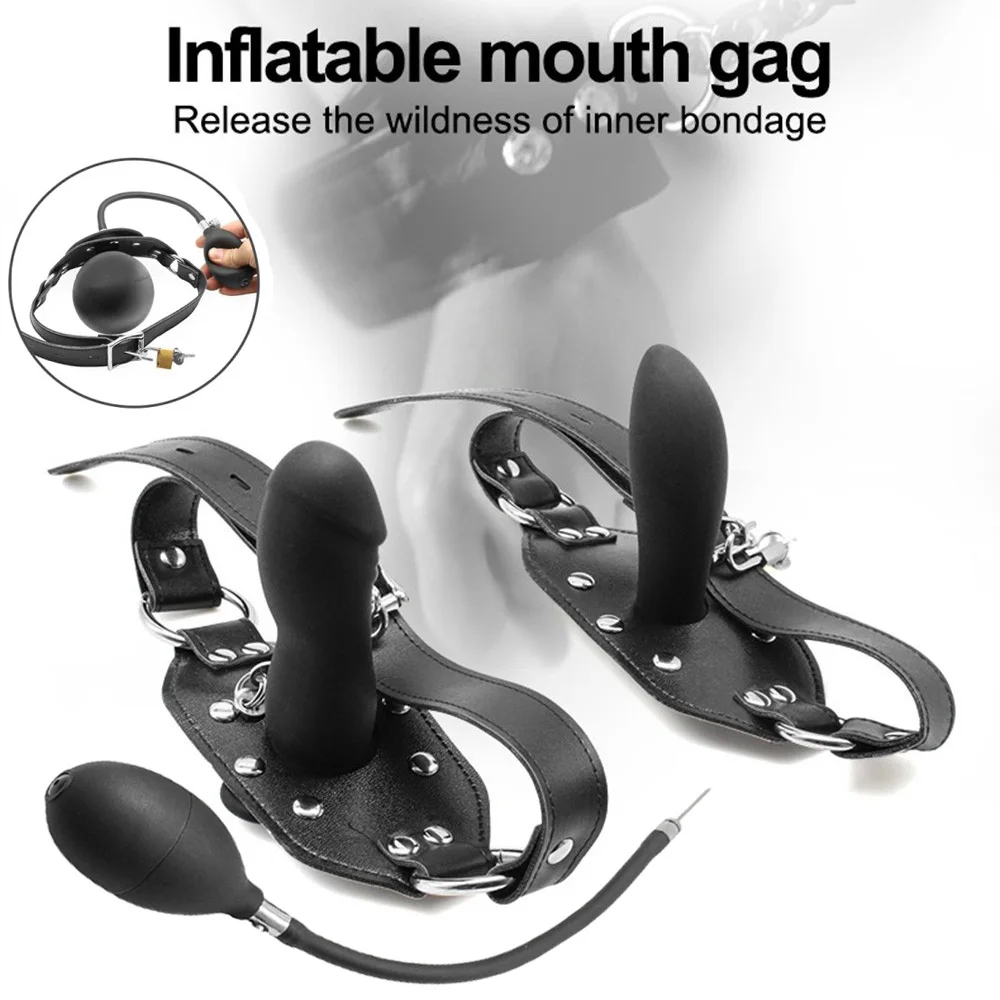Надувной пенис Guimi с открытым ртом, заглушка для пениса, оральный фаллоимитатор, кляп для рта, фетиш, бондаж, фиксаторы, секс-игрушки для взро...