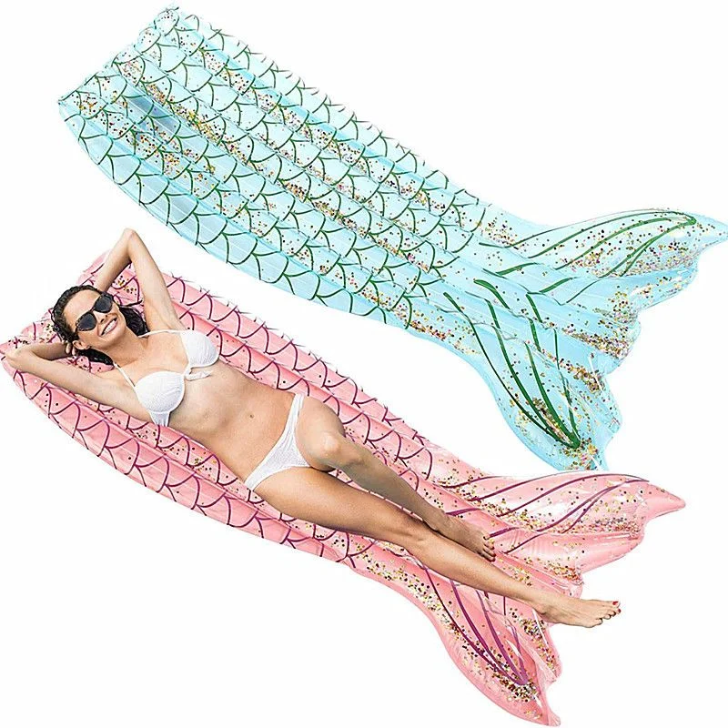 Надувной шезлонг с пайетками и хвостом русалки, плавающий ряд, для бассейна, плавающий контур, надувной шезлонг