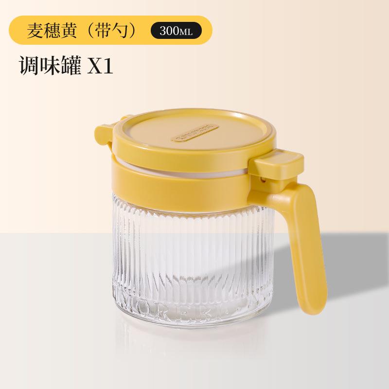 Нажмите на коробку для приправ Бытовая стеклянная банка для приправ Кухонная герметичная влагостойкая емкость для хранения Сахарница-солонка Кухонная банка для приправ с дозатором жёлтый