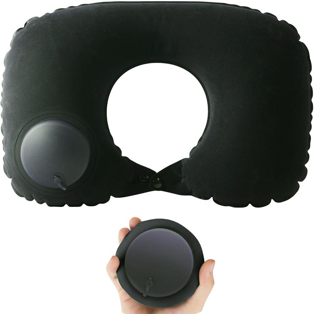 Нажмите на надувную подушку для расслабления шеи Подушка для путешествий U-образной формы Складная и портативная с устройством защиты от протечек Обычная U-образная чёрный