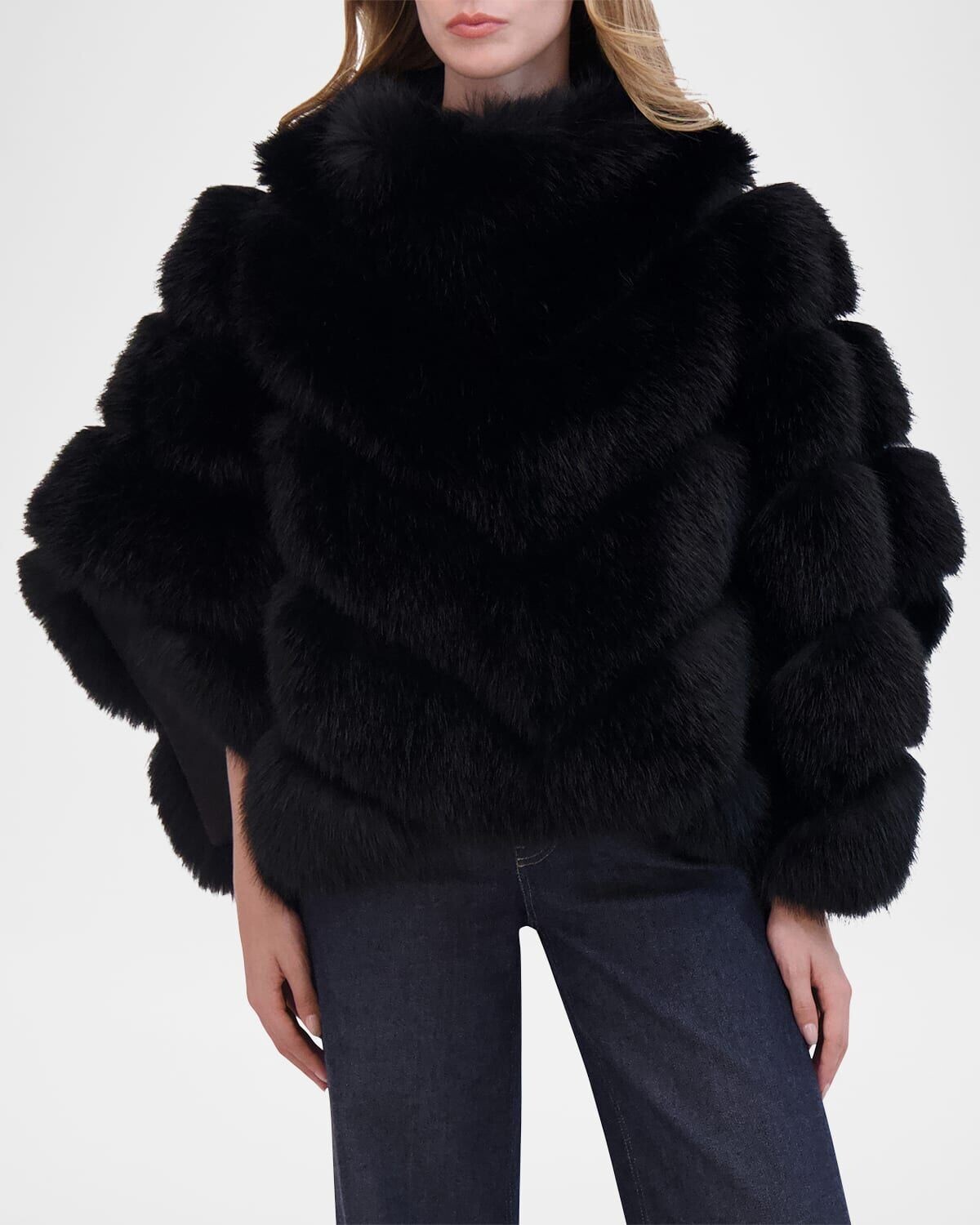 Накидка из искусственного меха с шевронным узором под лису Theia, черный