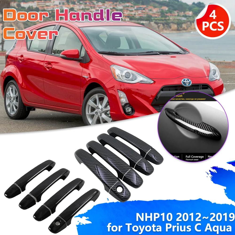 Накладка на дверную ручку автомобиля Toyota Prius C Aqua NHP10 2012 ~ 2019, хромированная отделка, накладка, углеродное волокно, черный комплект наклеек, аксессуары 2013