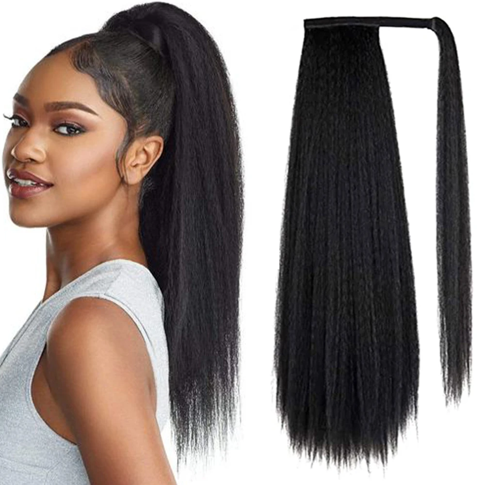 Накладной хвост Yaki, Синтетические прямые пушистые волосы для конского хвоста, черные и коричневые, 22 34 дюйма