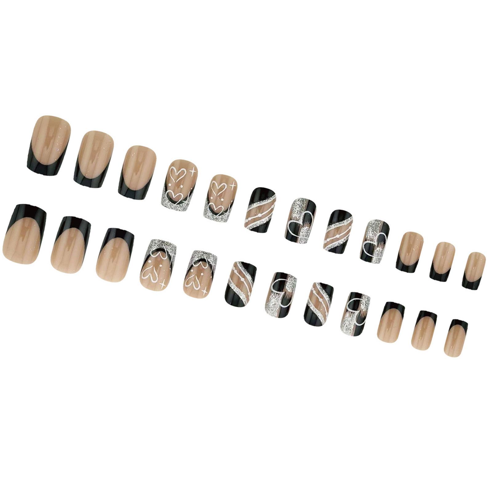 Накладные ногти на День святого Валентина, квадратные, накладные ногти, акриловые, полное покрытие, накладные ногти, накладные ногти, блеск для ногтей, 12 размеров
