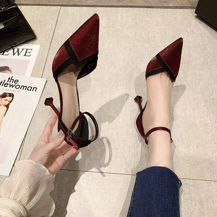 Туфли женские на высоком каблуке, заостренный носок, ремешок с пряжкой, пикантная модная повседневная обувь, 2021