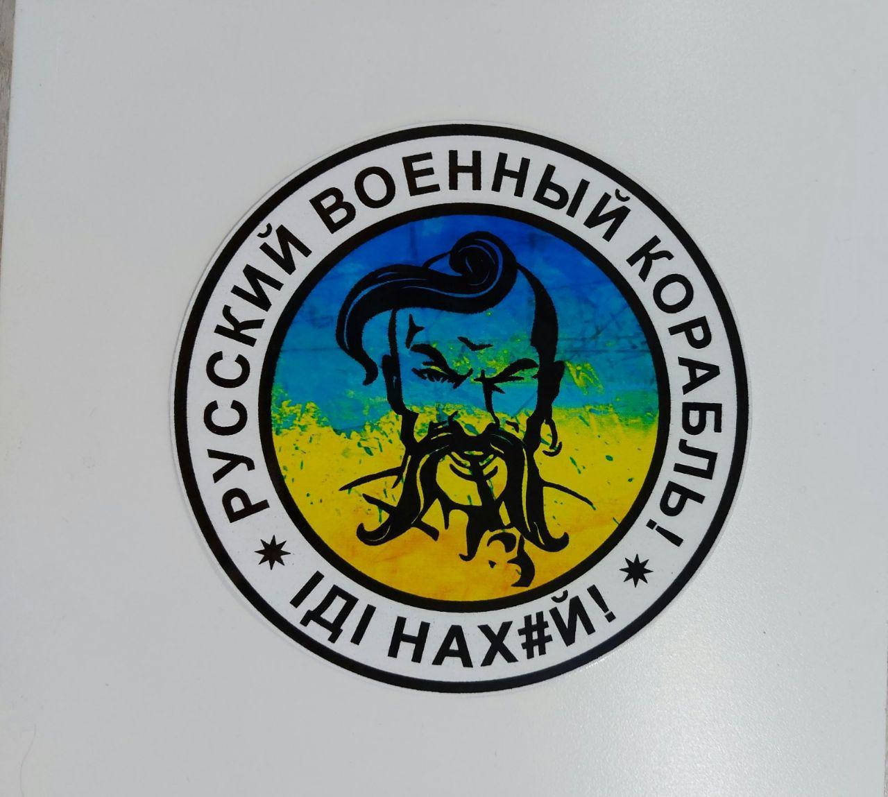 Наклейка "Русский военный корабль иди нах#й!" 15*15см, Белый