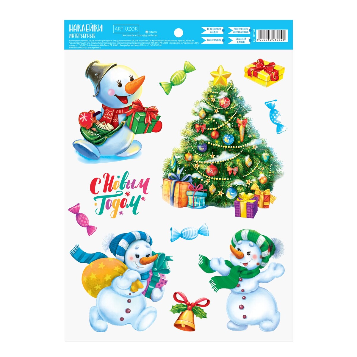 Наклейка интерьерная «Снеговички», 21х29.7 см.