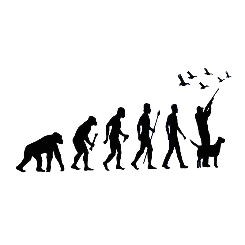 Наклейка на автомобиль, охотник, эволюция, охотник, собака, утка, ПВХ, забавная наклейка на автомобиль, водонепроницаемая, черная/белая, 16 см х 8 см
