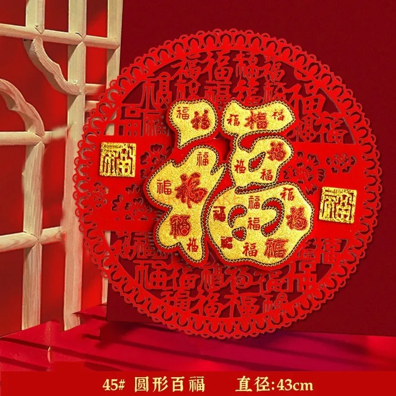3D door sticker, circular wall sticker, window sticker, outdoor hollow out self-adhesive New Year's blessing sticker