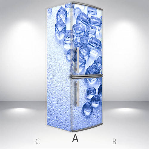 Наклейка на холодильник, кубика льда, 200х65 см - Лицевая+Левая(А), с ламинацией, Голубой