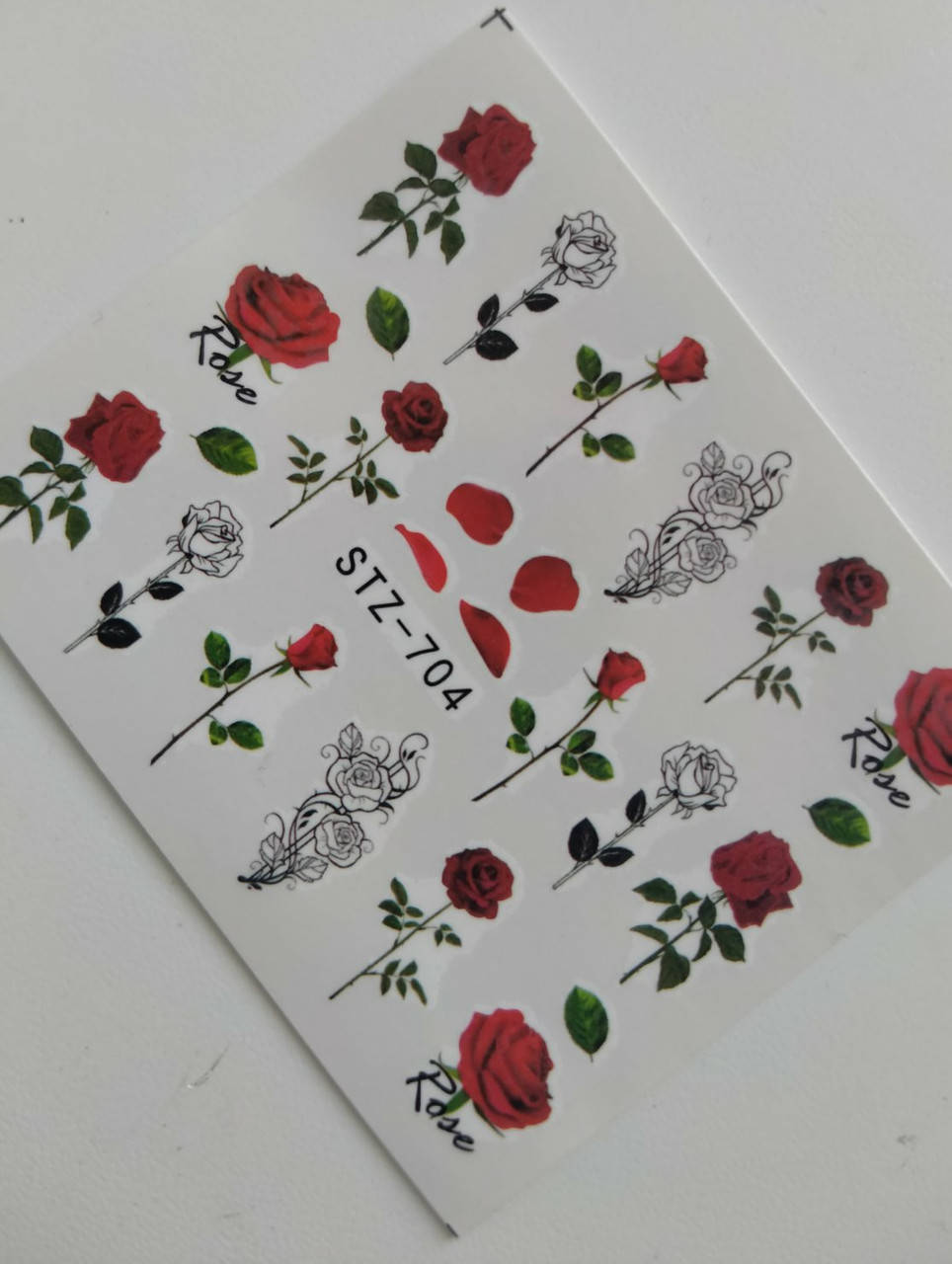 Наклейка слайдер водная для дизайна ногтей STZ-704 Розы