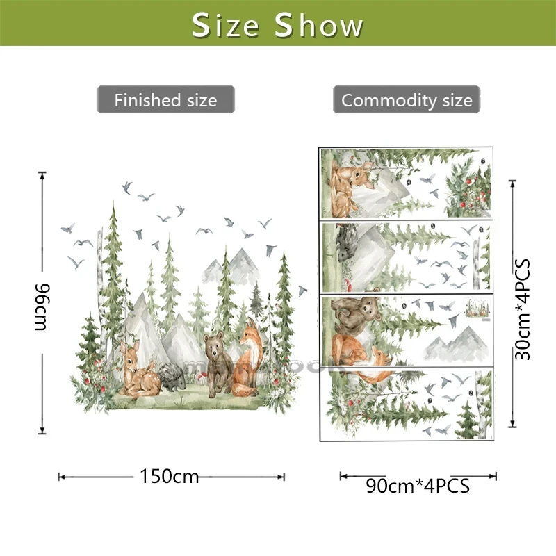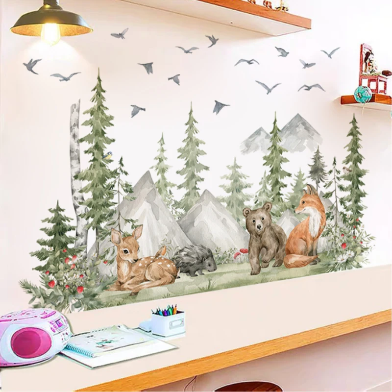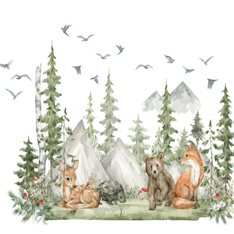 Наклейки на стену в детскую комнату с изображением леса животных оленя медведя