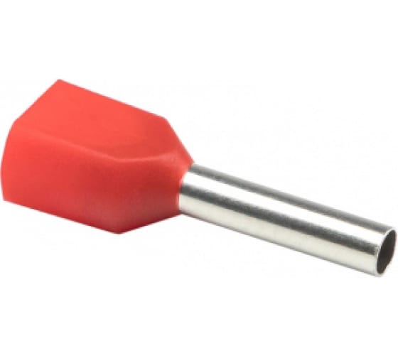 Наконечник НШВИ2 штыревой втулочный изолированный, 1 мм², медь, луженый, под опрессовку, красный, 50 шт., EKF 1.0-10 (nhvi2-1.0-10), 1.0-10