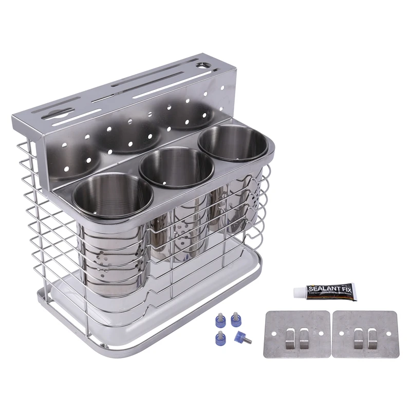 Wall Mounted Stand Kitchen Storage Rack Knife Holder Cutlery Box Spoons Forks Organizer Container Dishware