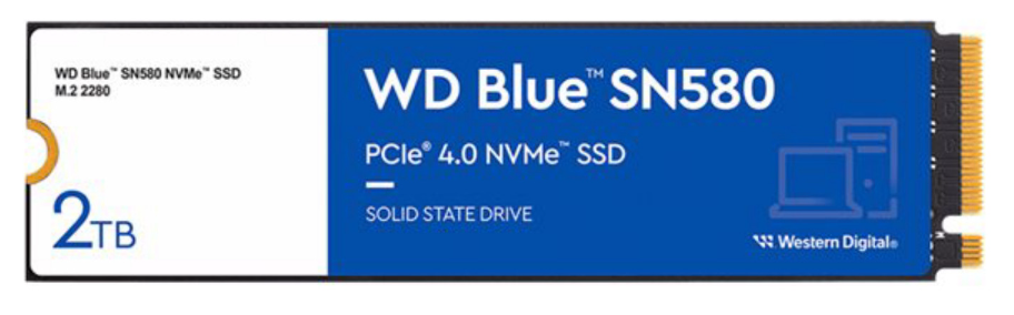 Накопитель SSD M.2 2280 Western Digital WDS200T3B0E WD Blue SN580 2TB PCIe 3.0 x4 NVMe 3D TLC 4150/4150MB/s IOPS 600K/750K MTBF 1.5M 900TBW, WDS200T3B0E