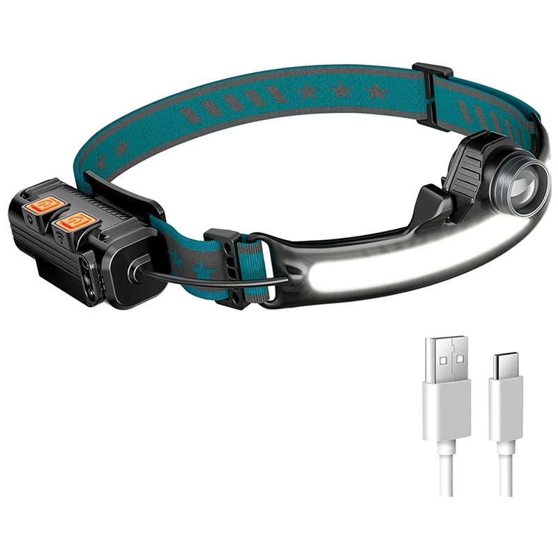Налобный фонарь с зарядным датчиком типа C, уличный светодиодный прожектор COB с зумом для ночной рыбалки, бега