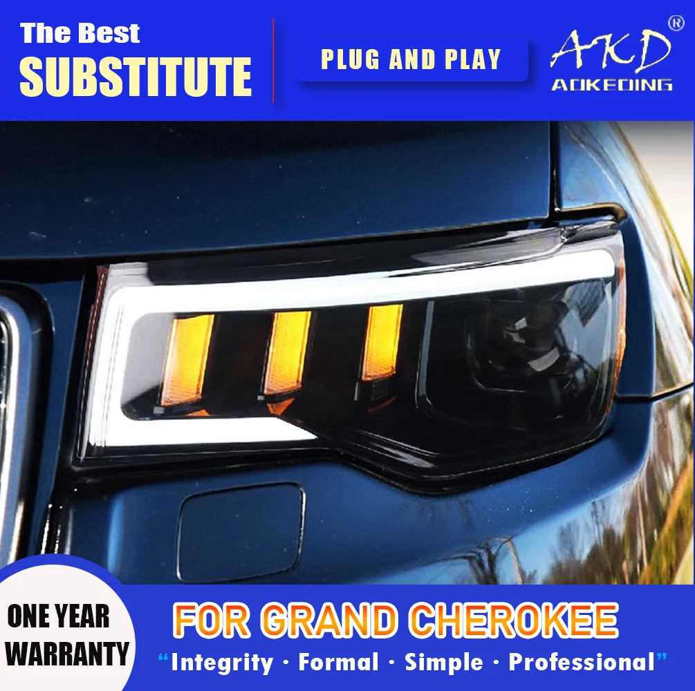 Налобный фонарь AKD для Grand Cherokee, лампа для фар головного света 2014-2021, фары для Grand Cherokee, сигнал поворота, дальний свет, проектор с ангельским глазом