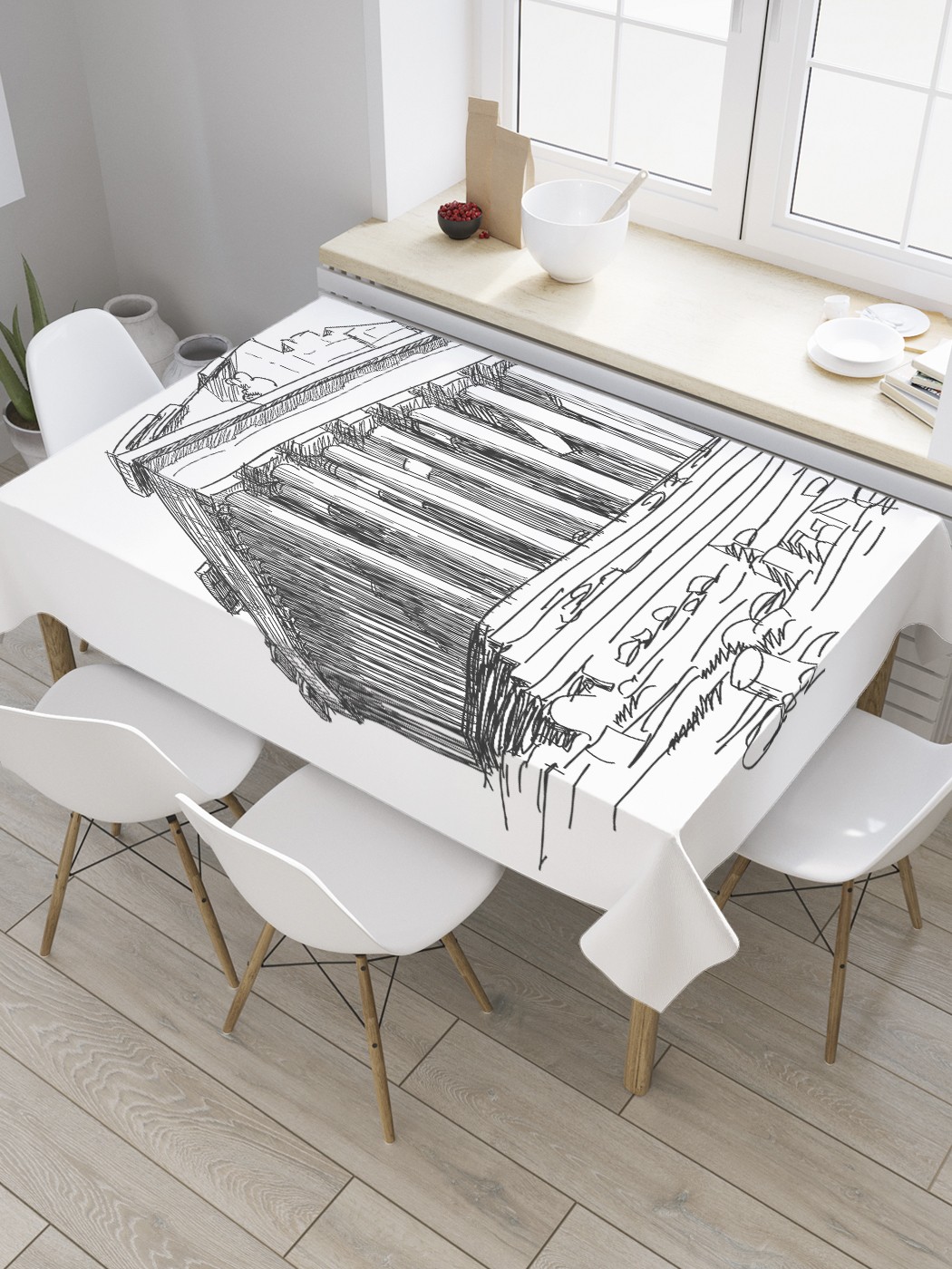 Скатерть прямоугольная JoyArty "Парфенон карандашом" из оксфорда, 120x145 см, Серый, Парфенон карандашом