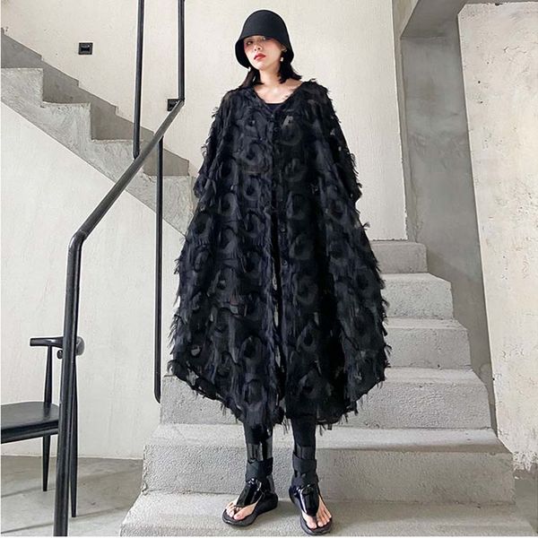 women's trench coats johnature 2021 fashion streetwear tassel sunscreen long summer plus size hooded collar half sleeve women, Tan;black