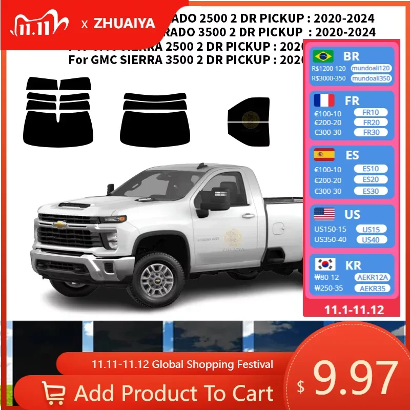 Нанокерамическая Автомобильная УФ-пленка Precut для окон, автомобильная оконная пленка для CHEVROLET SILVERADO 3500 2 DR PICKUP 2020-2024