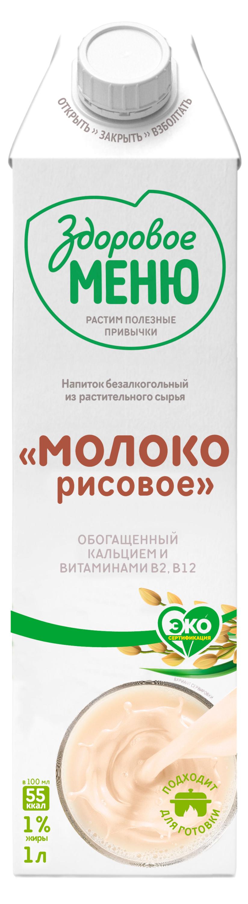 Напиток из растительного сырья Здоровое Меню Молоко рисовое обогащенное кальцием и витаминами 1%, 1 л