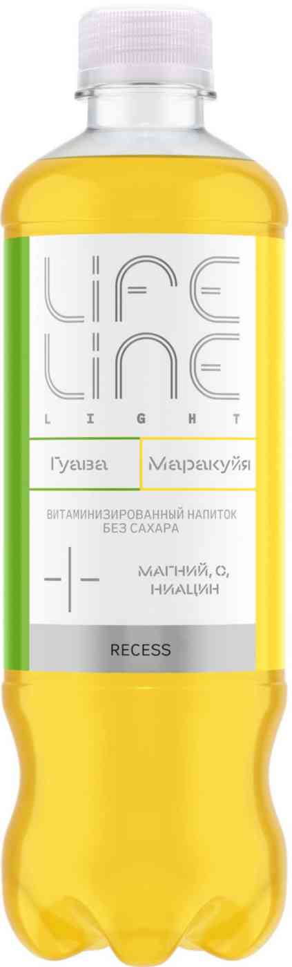 LifeLine – функциональные витаминизированные напитки для людей, которые заботятся о здоровье и хотят сделать свою жизнь яркой, насыщенной и интересной. В составе LifeLine только натуральные качественные ингредиенты, витамины и полезные микроэлементы.LifeLine Light Recess – это безалкогольный негазированный напиток без сахара со вкусом экзотических фруктов: спелой гуавы и сочной маракуйи. Содержит витамин С, который помогает поддерживать уровень энергии в течение всего дня. Ниацин нормализует обмен веществ, а магний стабилизирует уровень сахара в крови и поддерживает нормальное кровяное давление. Будьте в гармонии с собой!