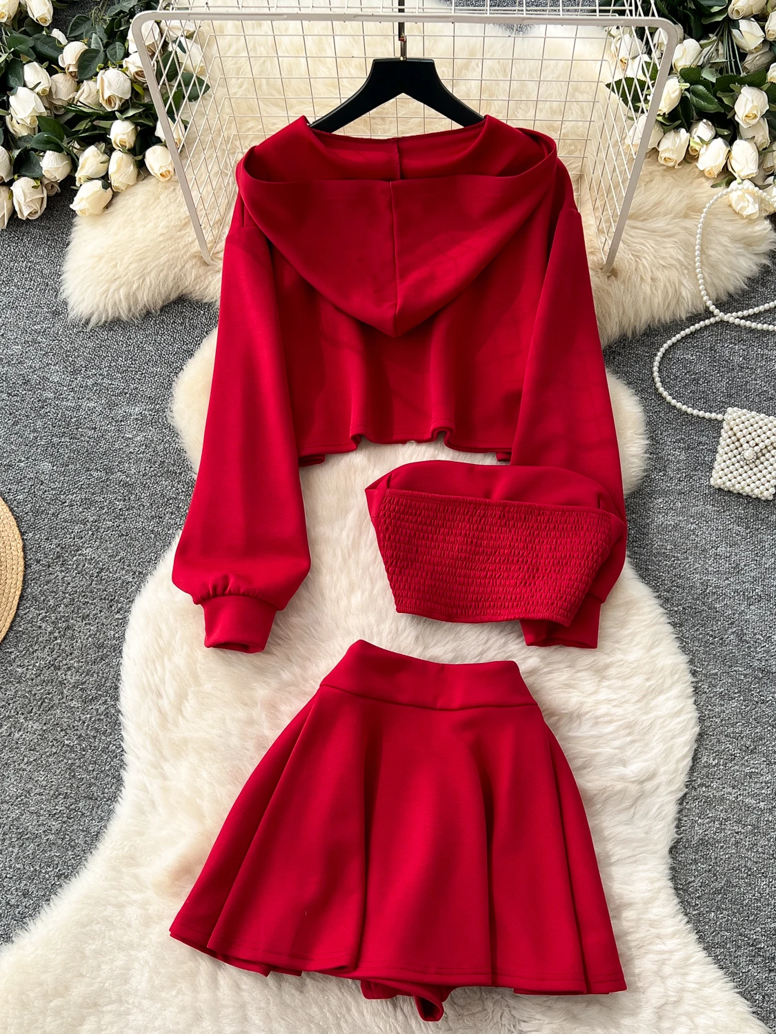 Sweet And Spicy Girl Повседневная одежда Женский жилет ort Sve Комплект с юбкой с высокой талией Осенняя внутренняя одежда Футболка Свободного кроя Толстовка Ja...