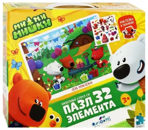 Добро пожаловать в увлекательный мир Ми-ми-мишек, где всегда происходит множество интересных событий! Сегодня озорные непоседы Кеша, Тучка, Лисичка и Цыпа приглашают вашего ребёнка собрать вместе с ними красивый напольный пазл, состоящий из 32 элементов. А замечательные наклейки, которые малыш получит в подарок, сделают встречу с любимыми героями незабываемой! Так что вперёд навстречу новым приключениям!