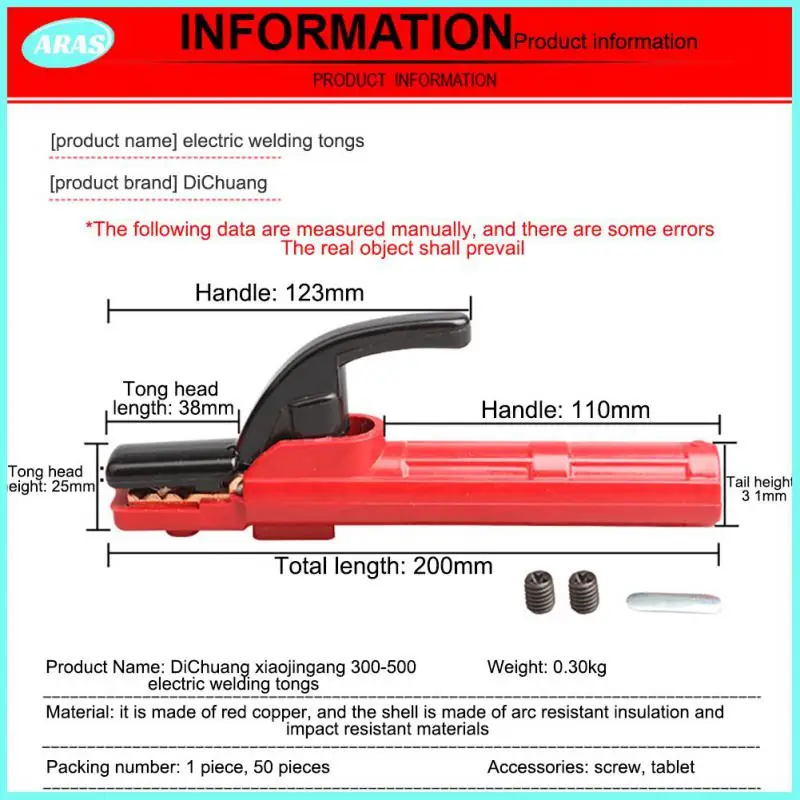 Electric Welding Tongs Mini Red Diamond Heavy Reverse Wiring Red Copper Electrode Holder Anti-Scald Cable Welding Tongs Hardware