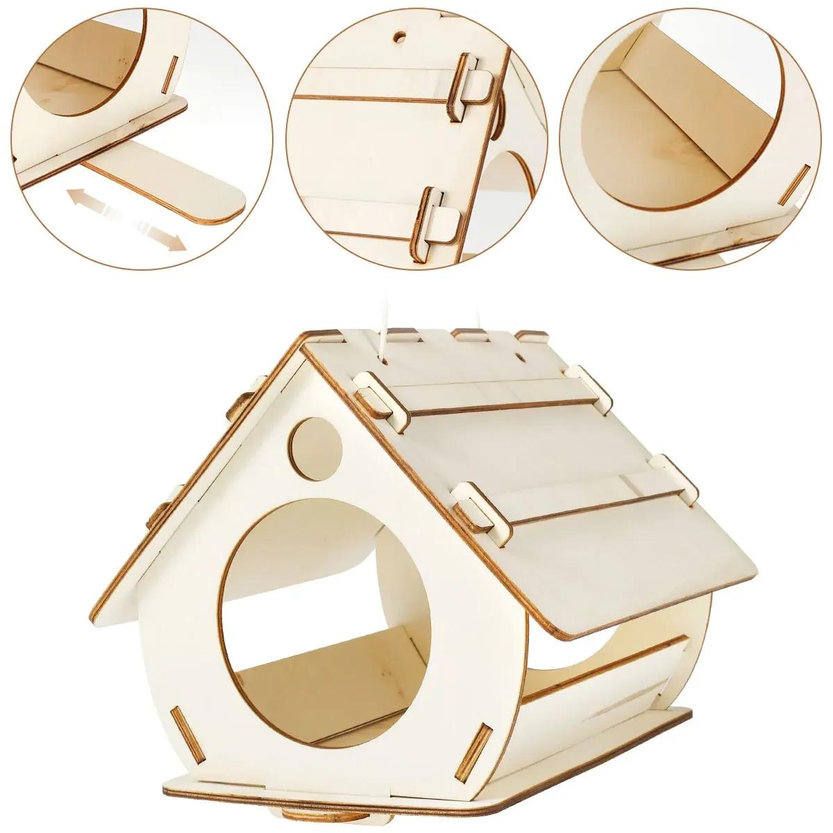 Наружная прочная деревянная подвесная кормушка для птиц, домик для крепления домашних животных, скворечник, сборка клетки для кормления домашних животных, украшение для сада