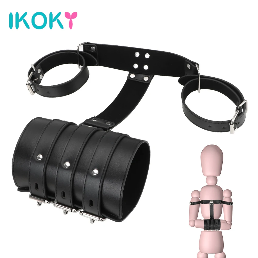 Наручники на запястье из искусственной кожи, бандаж для рук, ограничители для рук, регулируемые руки за спины, бондажи, секс-игрушки для взро...