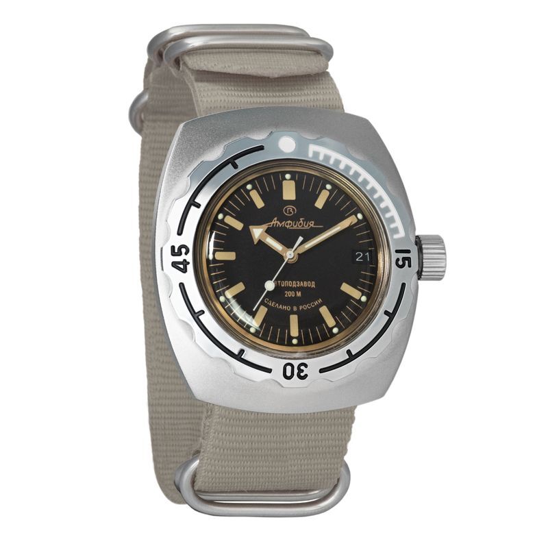 Мужские механические часы с автоподзаводом - Восток Амфибия 090679. Класс водонепроницаемости WR200. Подходят для плавания. Размер корпуса 48х41мм. Ширина браслета 22мм. Одна из самых известных модификаций корпуса, знаменитая "бочка", актуальный дизайн, сохранивший черты востоковского ретро. Внутри корпуса расположился механизм с автоподзаводом, при активном использовании подзаводится от движений руки и, как и всякая механика, не нуждается в батарейках и их замене. Безель (рамка вокруг циферблата) поворотный, вращается в обе стороны, градуированный. Часовая и секундная стрелка, а маркеры времени покрыты люминофором и мерцают в темноте. Стрелки контрастные, яркие, элементы циферблата имеют рельеф, так же хорошо заметны. Это позволяет удобно «читать» время. Наручные часы с символикой всех родов войск - это отличный подарок на день рождения, юбилей, 23 февраля, День Победы 9 мая.