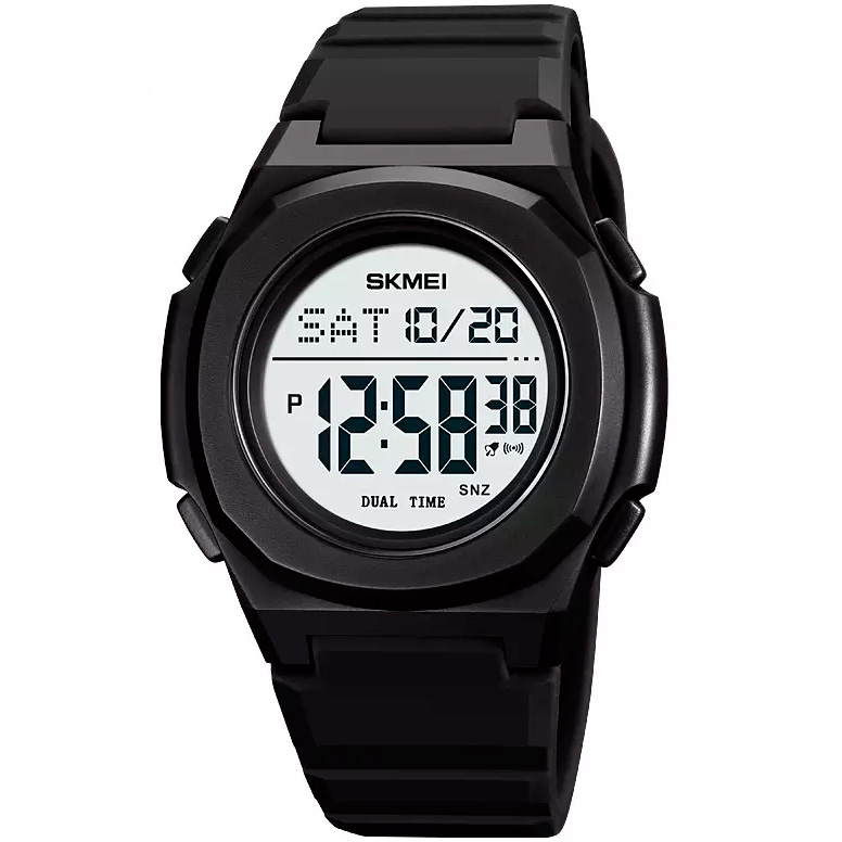 SKMEI 2023 – универсальная модель лаконичной красоты, которая подойдет под повседневный образ. Корпус 44 мм в диаметре изготовлен из прочного пластика, ремешок из приятного на ощупь материала, а классическая застежка из стали. Под прочным стеклом расположен электронный циферблат со множеством элементов, показывающих не только время, но и другие функции.Надежный корпус из ABS-пластика защищает механизм часов от повреждений в случае падения или удара. С тыльной стороны его закрывает крышка из нержавеющей стали – прочного и гипоаллергенного материала, который не магнитится к другим металлическим предметам или магнитам, не окисляется со временем, не изменяет свои свойства и структуру поверхности годами, а также служит надежной защитой для внутренней «начинки» от механических повреждений. Материал защищающий циферблат не помутнеет и не потемнеет даже после нескольких лет использования. У часов герметичный корпус с классом водонепроницаемости 5ATM. Их не придется снимать во время мытья рук и можно не бояться, что на них попадут капли дождя. SKMEI 2023 фиксируются на запястье с помощью практичного и долговечного ремешка из прочного материала приятного на ощупь, который выглядит стильно и отлично подходит тем, кто не может носить браслеты из металла. Длина его регулируется. Классический замок-пряжка из нержавеющей стали надежно удерживает браслет на руке и предохраняет от случайного расстегивания.Яркая LED подсветка позволяет узнать время даже в полной темноте. Достаточно нажать на кнопку и элементы экрана загорятся ярким светом.Технические характеристикиФункциональность: подсветка, таймер, секундомер, будильникОсобенности: водонепроницаемыеСтиль: спортивныеПол: женские, мужскиеМеханизм: кварцевыеВес: 43гМатериал: ABS-пластикМатериал браслета: силикагельМатериал стекла: стеклоФорма корпуса: кругКласс водонепроницаемости: WR50 (5 атм)Способ отображения времени: цифровой (электронный)Цифры: арабскиеОтображение даты: отображение дня недели, отображение числа, отображение месяца, второй часовой поясАвтоподзавод: нетДиаметр циферблата: 44ммТолщина циферблата: 13ммДлина ремешка: 25смШирина ремешка: 18мм