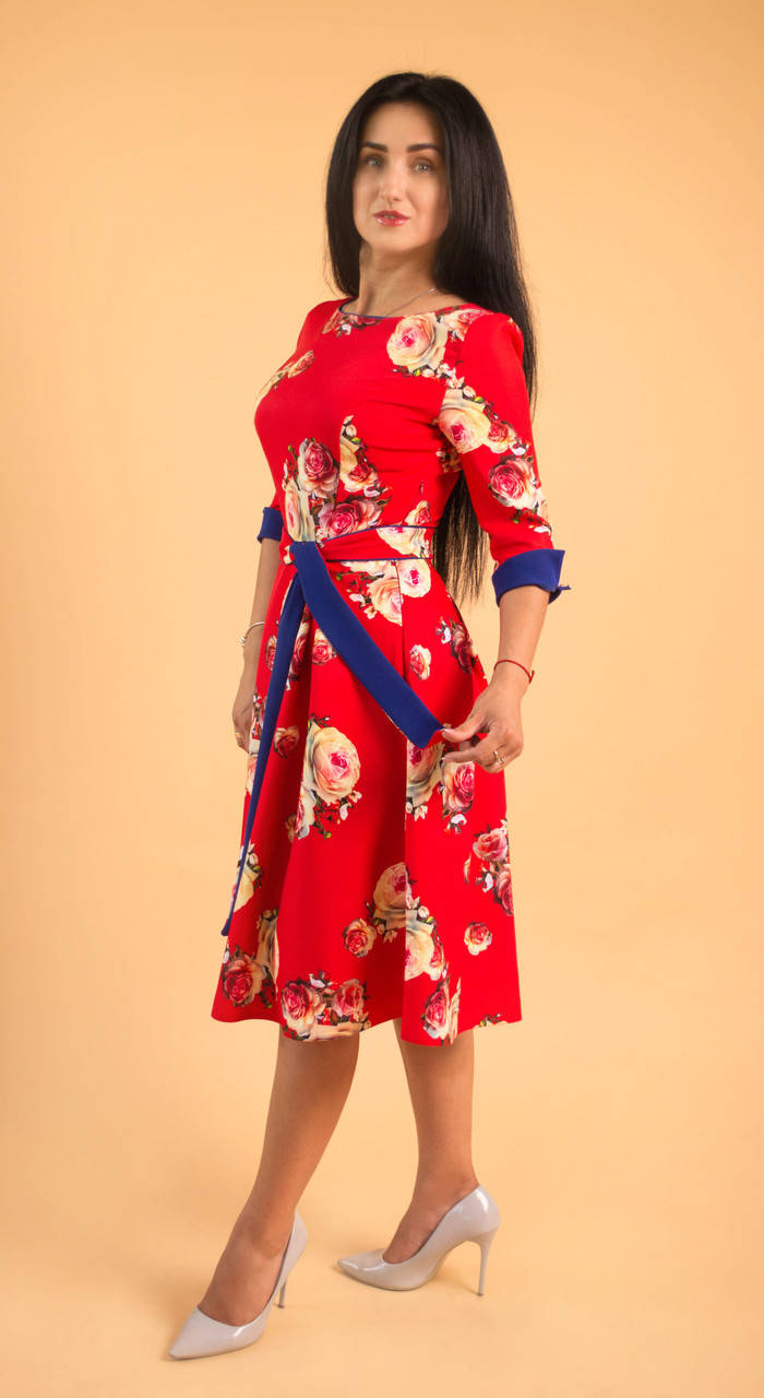 Это идеальное платье для наших милых девушек на все случаи жизни.В нем Вы элегантны ,милы и привлекательны.Идеально подходит,как для торжественных мероприятий,так и позитивных рабочих дней, Верх платья прилегающего силуэта с рельефами.От линии талии - полусолнцеклешь.Этот элемент платья подчеркивает в девушках их женственность,нежность и романтизм.Поясочек съемный с аккуратненьким перекантом,который повторяется по горловине округлой формы и так-же аккуратненько вставлен в рукавчиках платья.Желаем Вам всегда оставаться неподражаемой и немного застенчивой загадкой в этом чудесном платье. Ткань ,подобранная к этой модели неслучайно.Это крепкостюмка,она актуальна на весну и осень. По свойствам эта ткань:обладает низкой сминаеммостью,высокая износоустойчивость,придает издедию упругость и эластичность,хорошо воздухопроницаема,имеет определенный блеск,поверхность слегка зернистая,нити скручены и переплетены(так эта ткань приобретает свою зернистость),на солнце и после стирки не выцветает,не боится глажки ,но гладить лучше с изнаночной стороны. Длина изделия по спинке от плеча 100 см.,рукавчик - 40 см.Поясочек,конечно же идет в комплекте.