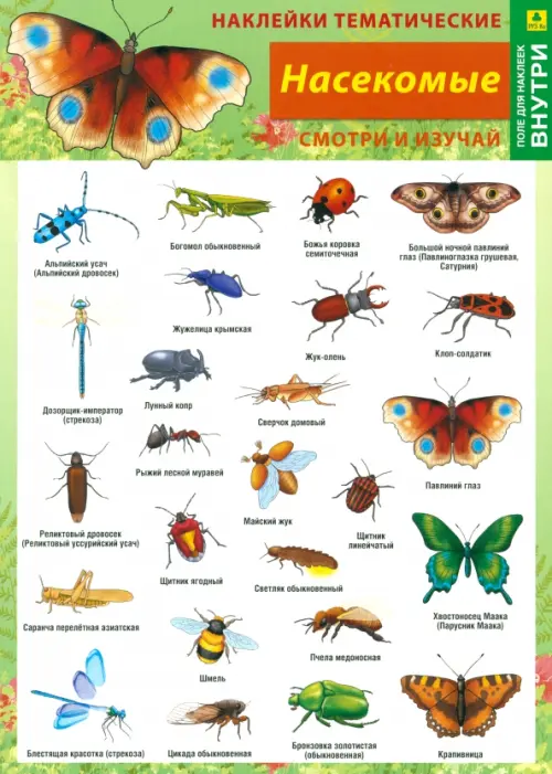Первая страница содержит наклейки, вторая - информационный материал. В качестве бонуса вложена раскраска по теме "Насекомые".