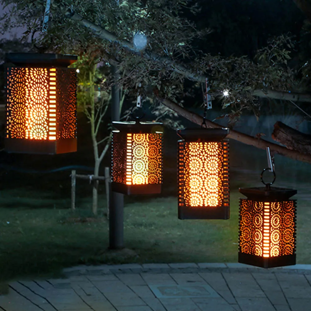 2Pcs Solar Flame Lanscape Lights Waterproof Outdoor Hanging Solar Lights Dancing Flame Lantern Lights Auto Turn On/Off for
