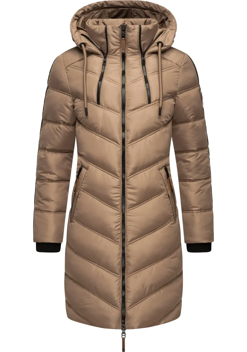 Зимнее пальто Marikoo "Армаса", модное женское зимнее стеганое пальто с капюшоном, коричневый