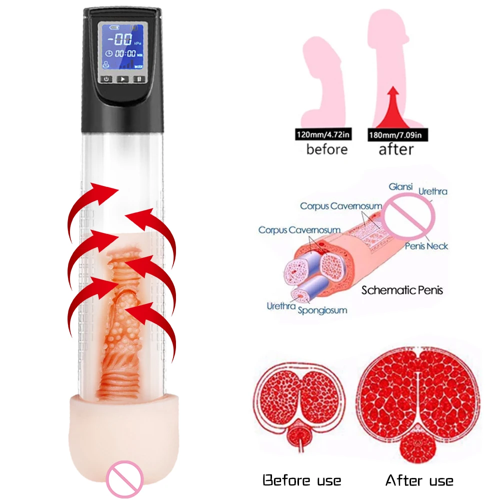 Насос для мужского пениса Электрический вакуумный насос для увеличения пениса инструмент для мужской мастурбации тренажер для пениса Эрот...