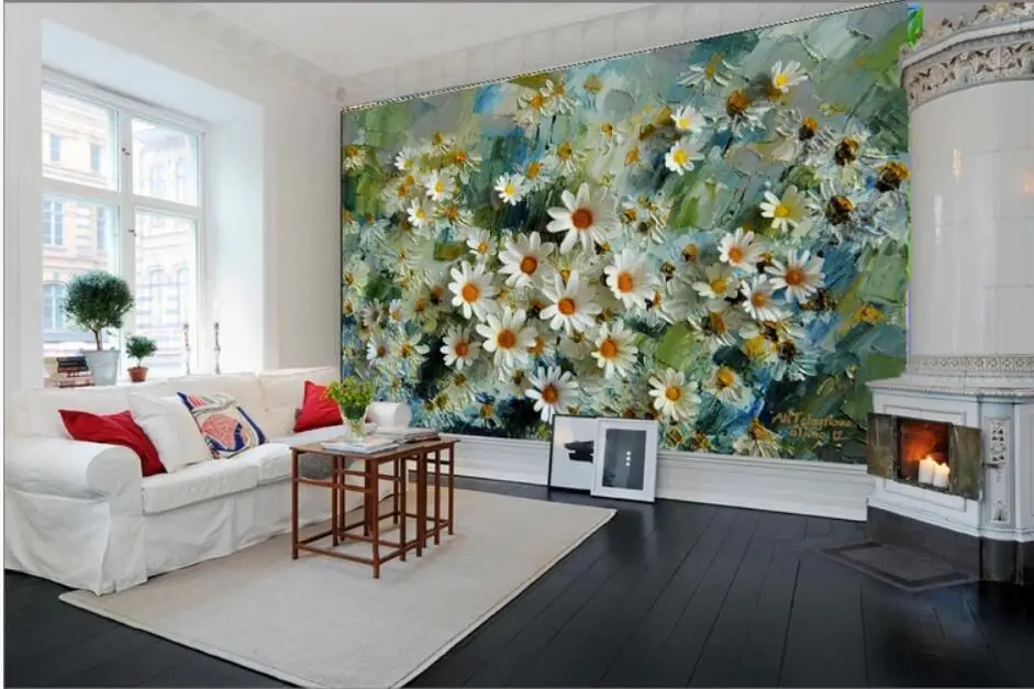 Настенная бумага с цветами, фрески в европейском и американском стиле, обои с хризантемами, картина маслом, фон для телевизора, настенная бу...