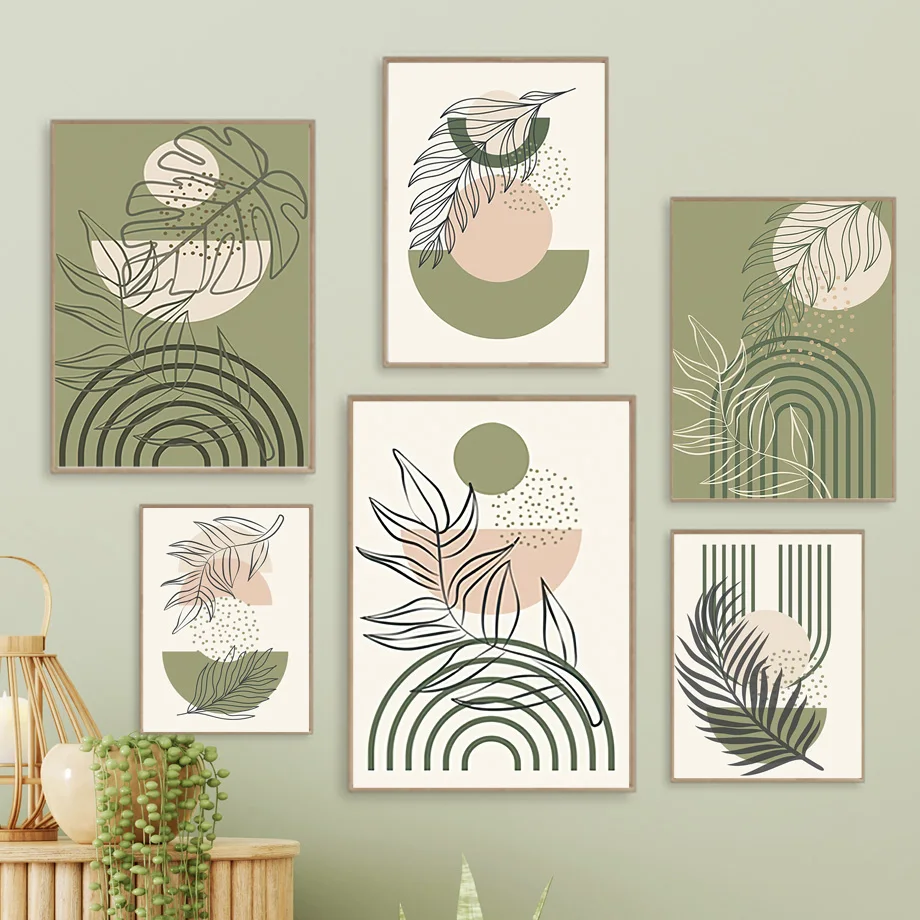 Настенная картина с абстрактными геометрическими линиями зеленого цвета