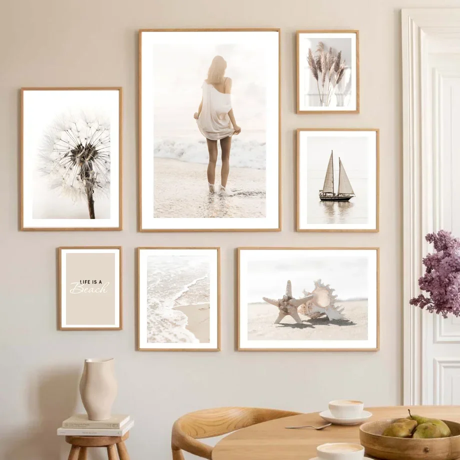 Настенная картина с изображением одуванчика, девушки, морской звезды, пляжа