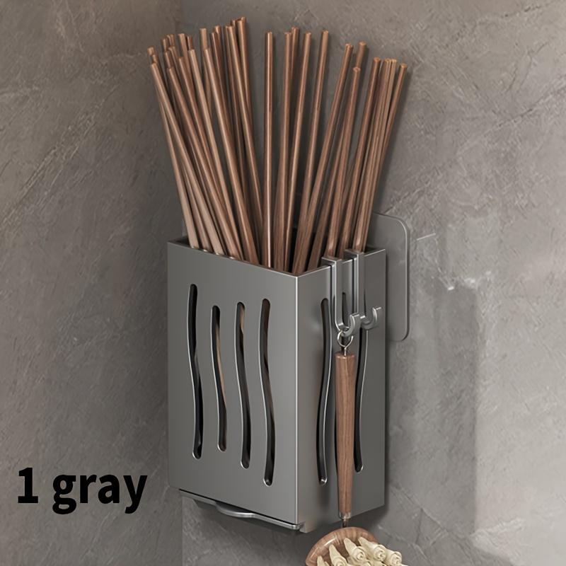 Настенная кухонная клетка для хранения со сливным поддоном. Держатель для палочек для еды. Ящик для хранения ложек. Ящик для слива столовых приборов для кухонной утвари. Кухонные предметы для хранения. серый