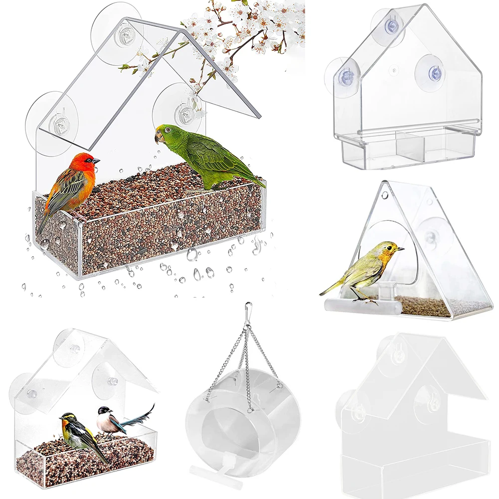 Настенная прозрачная присоска в форме домика, уличные кормушки для птиц, подвесные птичьи домики для наружного сада