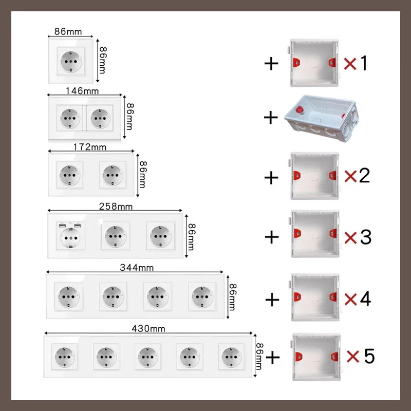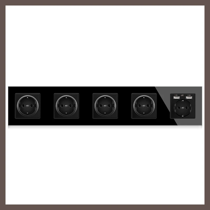 Настенная розетка USB, с черным хрустальным стеклом, с разъемами 172, 258, 430 см, 16 А