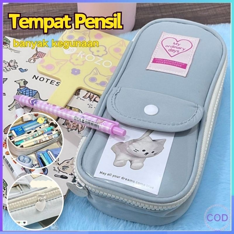 【COD】Tempat Pensil Korean Style Tempat Pensil Retro Heart Zipper Lucu Kapasitas Besar Tempat Pencil Tas penyimpanan alat tulis siswa cosmetic pouch