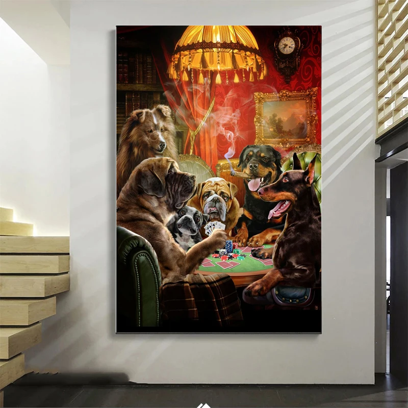 Настенные картины на холсте, постеры с забавными вечерние тными, собаками, играющими в покер, для гостиной